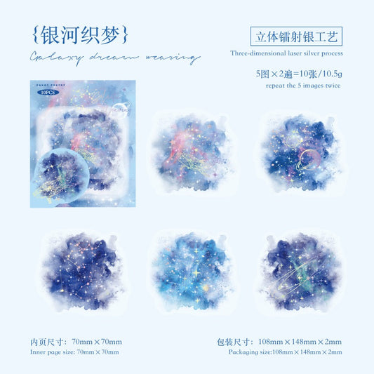 Stereo Laser Silver PET Brilliant Series Stickers - 10 PCS, 1 Pack